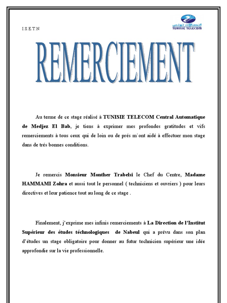 Remerciements du rapport de stage exemple methodologie - www.digischool.fr