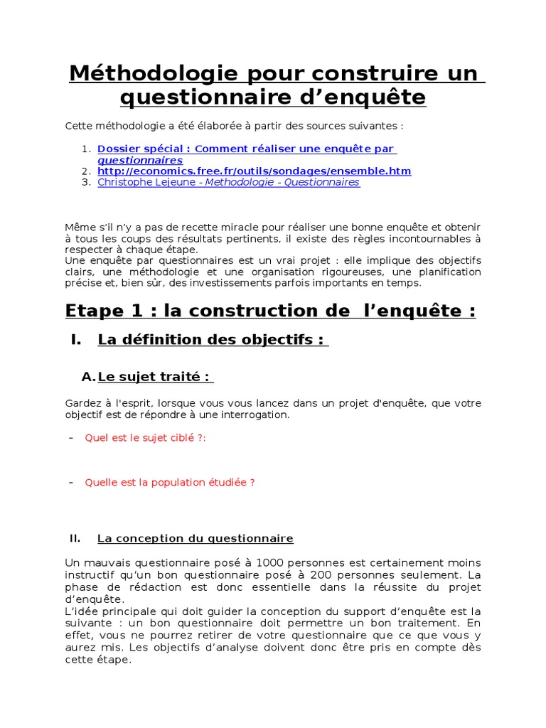 Methodologie pour construire le questionnaire enquetepdf edition - fr.scribd.com
